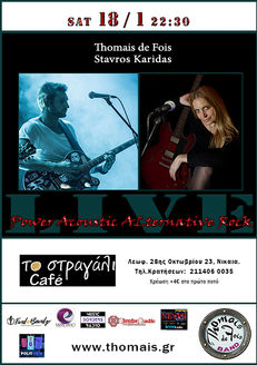 Ένα δυναμικό ντουέτο θα έχουμε μαζί μας το βράδυ του Σαββάτου, 28/6, με τους: Thomais de Fois & Stelx, να μοιράζονται τη σκηνή σε ένα όμορφο πρόγραμμα με Alternative Rock διασκευές και κομμάτια από τη δισκογραφία της Θωμαΐδας, με την ίδια να τραγουδάει με την ιδιαίτερη δυναμικότητα της, να παίζει κιθάρα και κρουστά, και τον Stelx σε εξαιρετική ερμηνεία και κιθάρα!